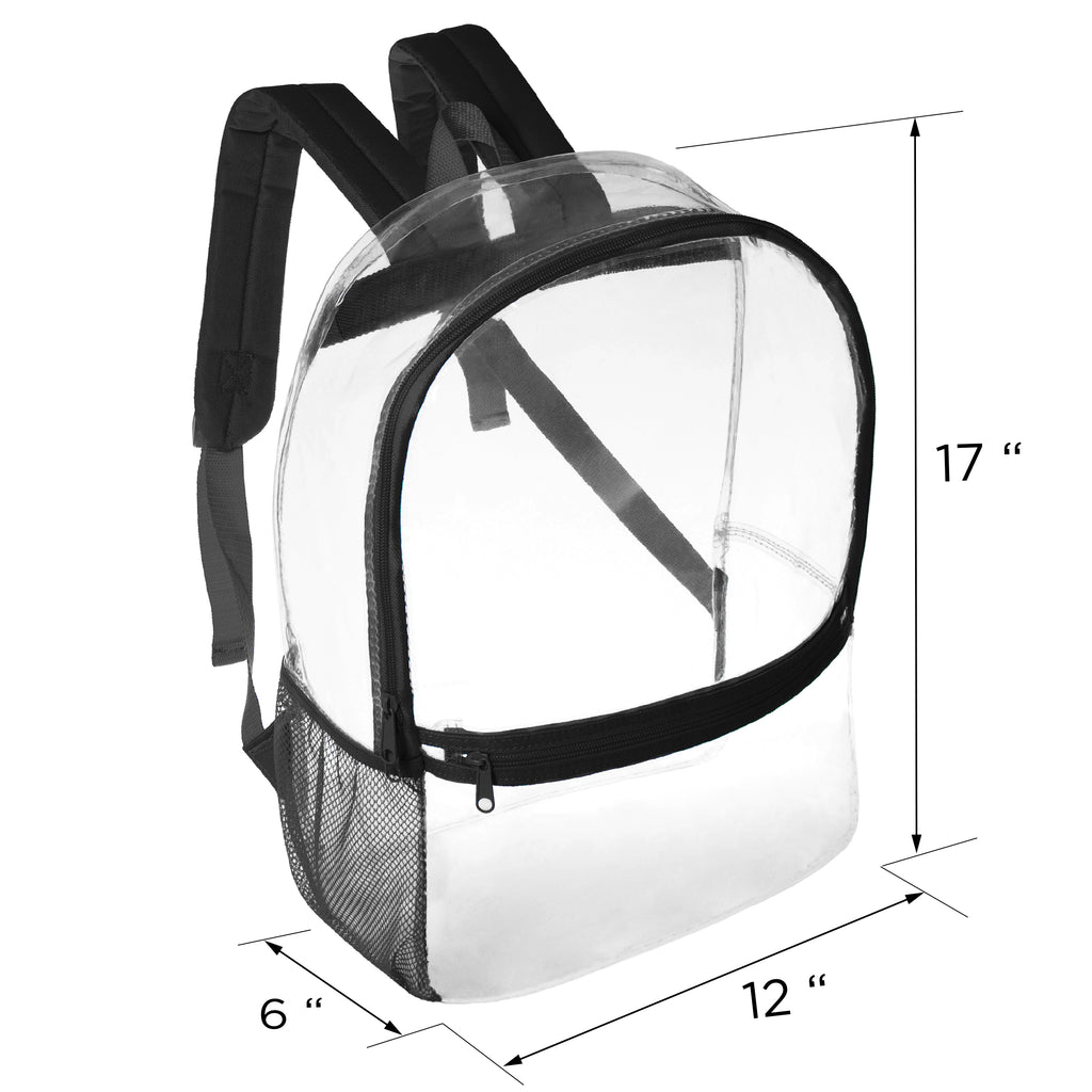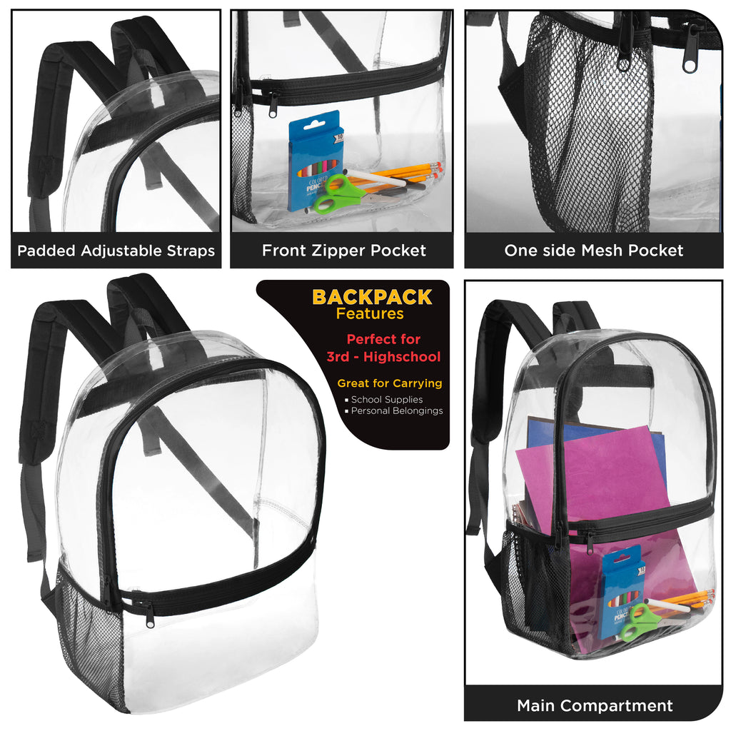 17” Wholesale Clear PVC Backpacks with Black Trim – Bulk Case of 24 Backpacks