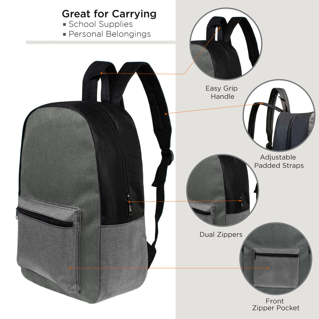 12 Basic 17" Backpacks in Assorted Colors & Your Choice of 12 Winter Item Sets - Wholesale Care Package: Homeless, Emergency, Charity
